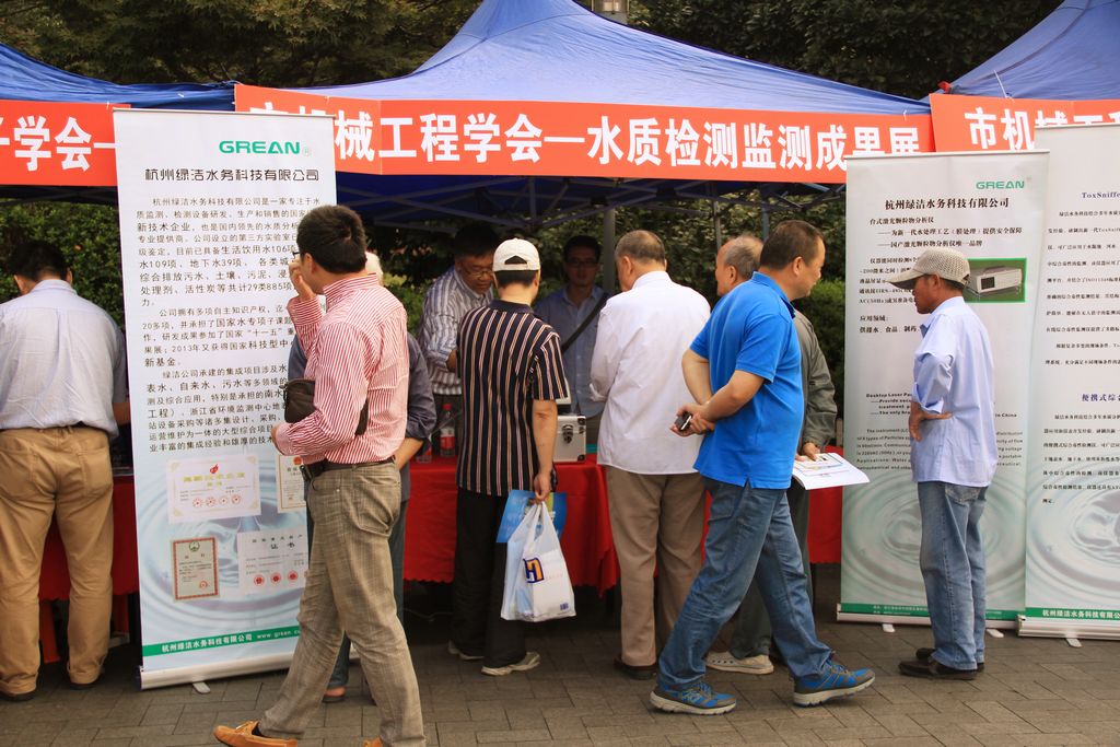杭州綠潔水務(wù)科技有限公司應(yīng)杭州市機(jī)械工程學(xué)會(huì)的邀請(qǐng)參加此次活動(dòng),向廣大市民展示了綠潔水務(wù)自主研發(fā)的激光顆粒物分析儀GR-1500A。綠潔水務(wù)技術(shù)人員在活動(dòng)現(xiàn)場(chǎng)開展了顆粒物檢測(cè)的互動(dòng)活動(dòng),不少市民拿來了自備水樣進(jìn)行現(xiàn)場(chǎng)檢測(cè),并高興的說到:“有了這種儀器,我們就可以知道我們家里的凈水器效果好不好了!”,市民們通過觀看不同水樣的顆粒物檢測(cè)結(jié)果和現(xiàn)場(chǎng)的交流,增加了飲用水安全的知識(shí)。