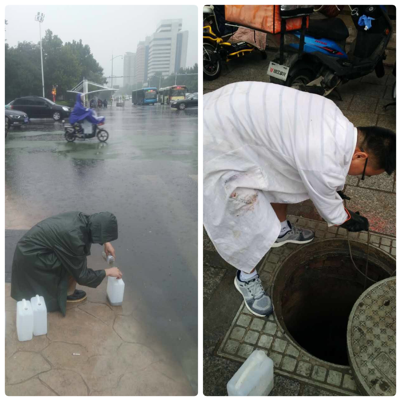 盛夏的某天,濟南大雨磅礴,但依舊能在一些河道、雨水管道、建筑小區(qū)、化糞池等附近見到綠潔君的同事們,他們不畏酷暑和風雨,合理、有序地在堅守在監(jiān)測點進行人工采樣,然后馬不停蹄送至實驗室檢測,為水質(zhì)分析提供第一手數(shù)據(jù)。
