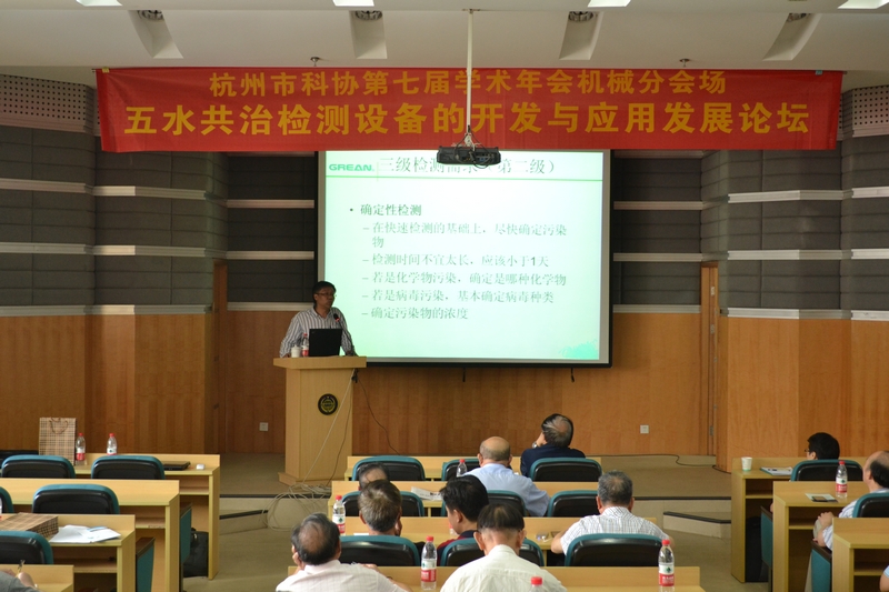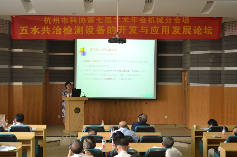 本次會議由竹正功秘書長主持,杭州市科學(xué)技術(shù)協(xié)會學(xué)會部吳建國領(lǐng)導(dǎo)發(fā)表致辭。作為協(xié)辦方,本公司領(lǐng)導(dǎo)單旭亮副總受邀出席此次會議,并作了題為《水質(zhì)檢測、監(jiān)測技術(shù)領(lǐng)域的創(chuàng)新與應(yīng)用成果》的專題報(bào)告。在報(bào)告中,單副總為大家介紹了“五水共治的理解”,結(jié)合“浙江省水質(zhì)在線監(jiān)測的現(xiàn)狀”,指出了目前水污染整治關(guān)鍵所在,同時(shí)給與會者展示了綠潔公司最新研發(fā)的產(chǎn)品以及應(yīng)用成果。綠潔公司的產(chǎn)品受到協(xié)會領(lǐng)導(dǎo)的高度贊賞,感謝綠潔公司為杭州飲用水安全提供了很好的保證,鼓勵綠潔公司再接再厲,在水質(zhì)檢測監(jiān)測領(lǐng)域繼續(xù)前進(jìn),取得更大成就!
